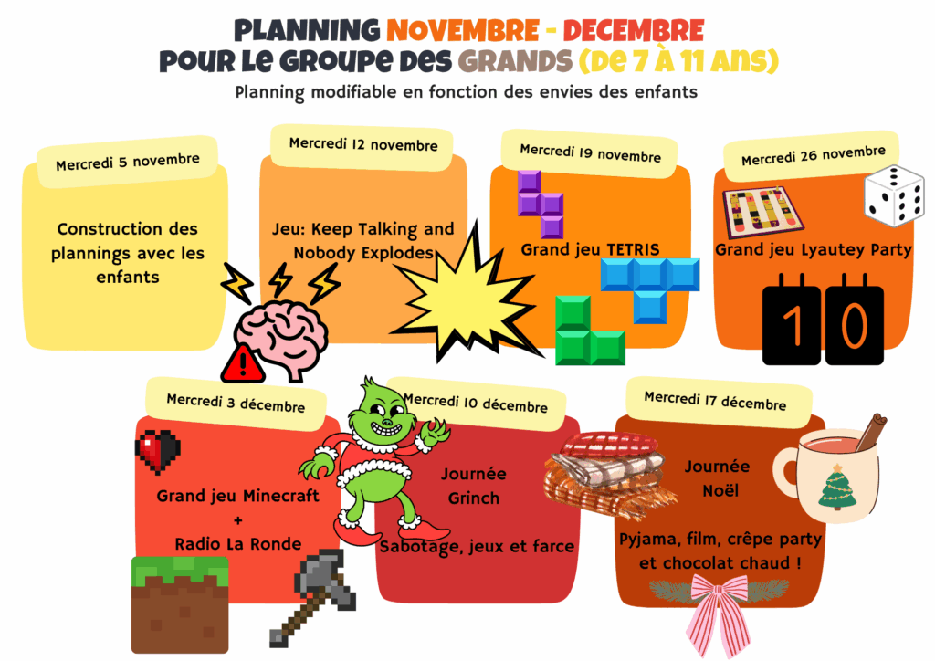 Planning des grands (6 ans et +)